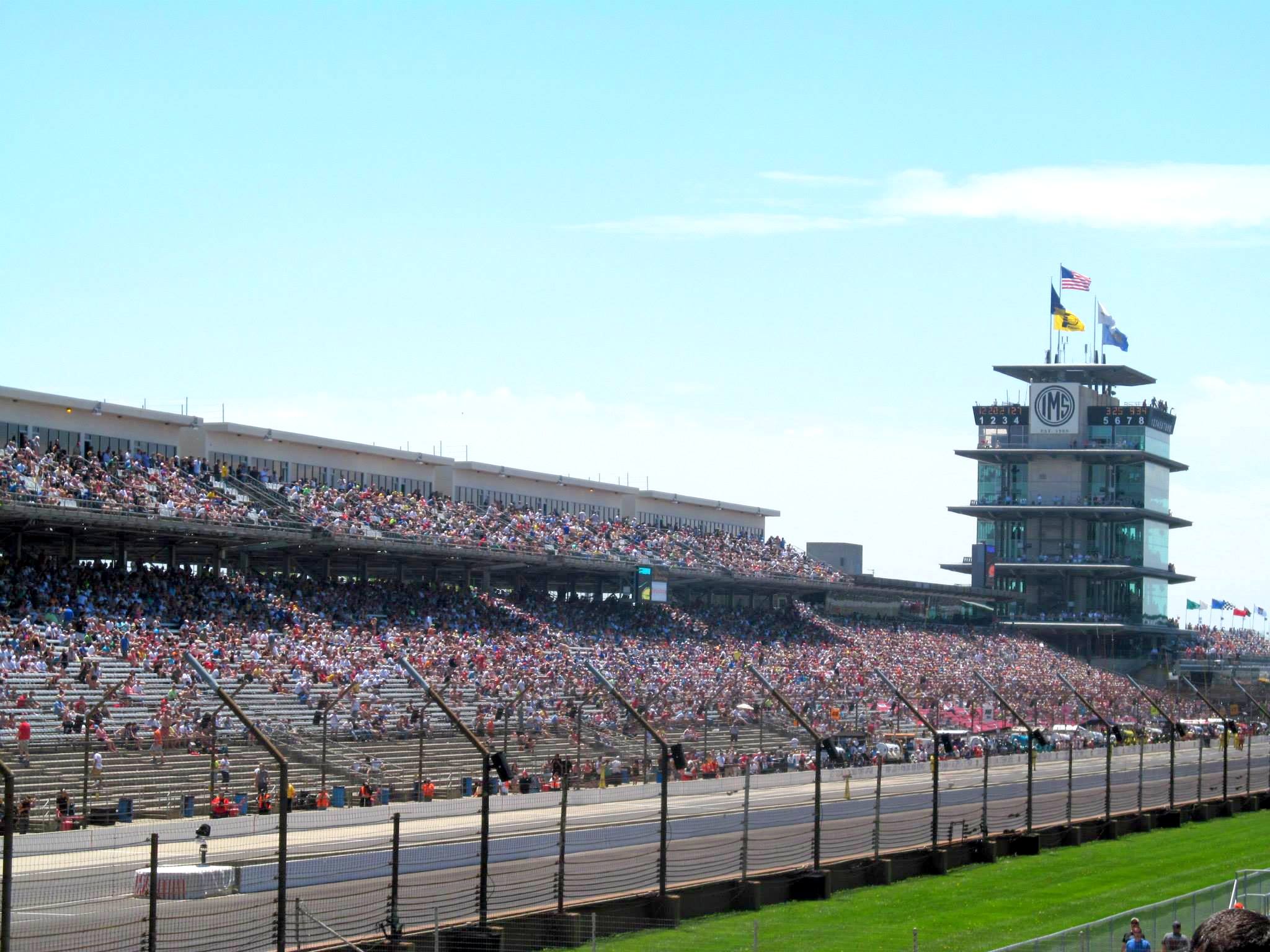 The pagoda behind the main straight at the Indy 500