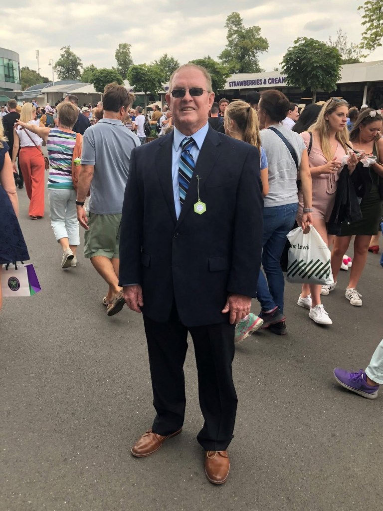 Standing next to the “Strawberries and Cream ” stand at Wimbledon in 2018